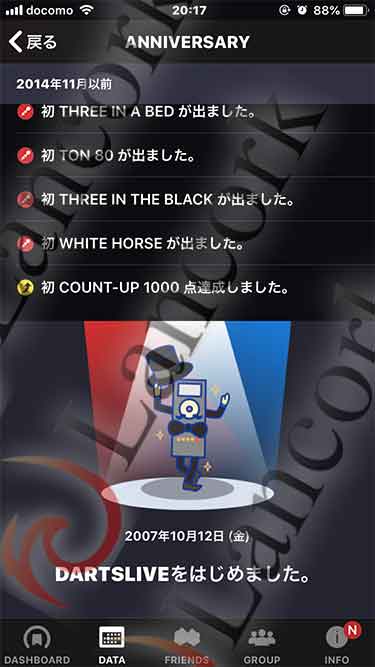 ダーツライブに登録したのが 2007年10月22日(金)になります。(画像は以前盗用があったので透かしを入れてます)