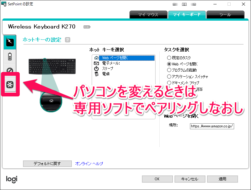 ワイヤレスキーボード「K275」はロジクールの Unifying レシーバーとペアリングします。