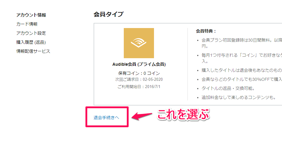 退会のお手続きはカスタマーサービスまでご連絡いただくか、Audible.co.jpのPCサイトからお客様ご自身で退会いただけます。アプリやモバイルサイトからは退会手続きができませんので、PCサイトに移動していただく必要があります。